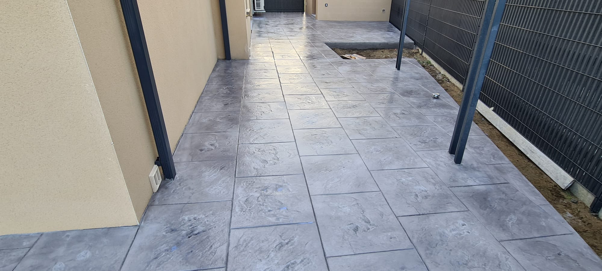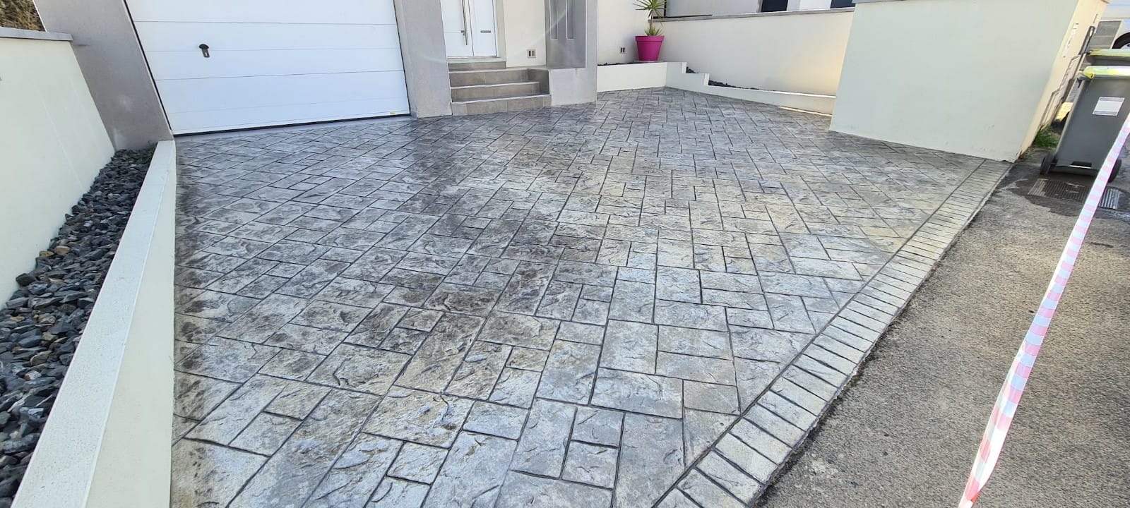 Esthétique Réaliste : Le béton imprimé peut reproduire l’apparence de matériaux naturels tels que la pierre, le bois, la brique, ou le pavé, offrant ainsi une grande variété de styles.